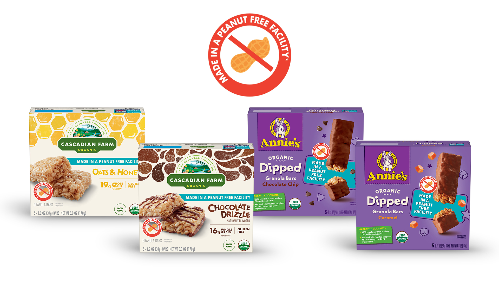 “At General Mills, we continue to innovate and develop products to best serve the needs of our consumers,” says Jason Resch, Business Unit Director, Natural & Organic at General Mills. “These Annie’s and Cascadian Farm granola bars made in a peanut free facility are no exception and will offer peace of mind for those who need it most."